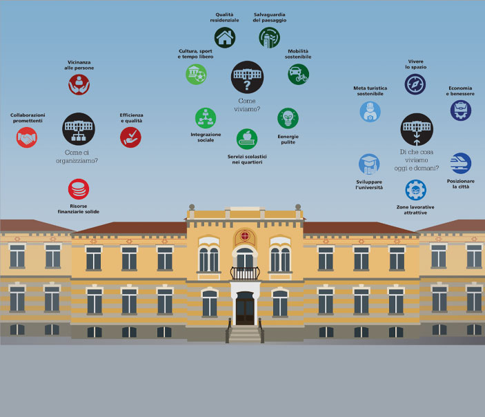 “Strategie Mendrisio 2035” è quindi la bussola per coloro che sono impegnati a garantire uno sviluppo armonioso e sostenibile di Mendrisio, con lo scopo di assicurare una buona qualità di vita.